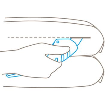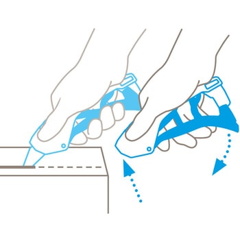 【安全レベル1】 手軽に使える安全カッターのエントリーモデルです。丸洗い可能で、カッター内部の細かい部分まで掃除でき、衛生的です。レバーを握ると刃が出て、未使用時は収納されているので刃が出っぱなしにならず、安心です。本体や刃は金属検出機で検出可能です。カットの深さ32mmの刃で、クラフト紙袋や多層袋の胴切り開封が一度にできます。左利きにも対応。