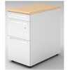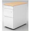 プラスのスタンダードデスク US2専用脇机 D-3段袖タイプ。デスクと同じ高さで作業スペースと収納スペースを追加できます。D-3段袖タイプは下段がA4、B4サイズ対応の引出しになります。多量収納タイプは下段の奥行きが+111mm拡大されています(奥行700mmタイプのみ設定)。引出しは全段ラッチ付き、オールロック機構搭載です。