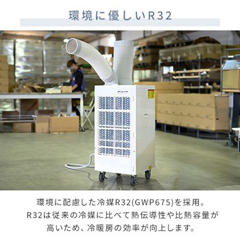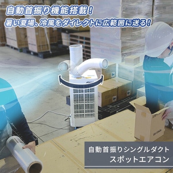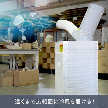 用途スポットクーラー 自動首振り機能 業務用 排熱ダクト付き キャスター付き床置型 倉庫 工場 熱中症対策 工事不要付属品冷風ダクト×1本、冷風ダクト用エルボ×1個、排熱ダクト×1本、ドレンホース×1本、取扱説明書×1、保証書×1材質スチール・樹脂質量(kg)37電圧(V)AC100(50Hz/60Hz)消費電力(W)(冷風)50Hz(強980、弱940)/60Hz(強1210、弱1150)スイッチロータリー式(切弱風弱冷強冷強風)+首振りタンク容量(L)4コード長さ(m)電源:約2定格電流(A)(冷風)50Hz(強10.8、弱10.5)/60Hz(強12.2、弱11.6)騒音値(dB)50Hz(強65、弱60)/60Hz(強66、弱59)保証期間1年使用環境温度(℃)25~45寸法(幅W×奥行D×高さH)(cm)40×43×84.5冷媒HFCR32(封入量:287g)圧縮機全閉型ロータリー(定格出力0.62/0.74kW)冷房能力(kW)50Hz(強2.2)/60Hz(強2.5)内容量1台