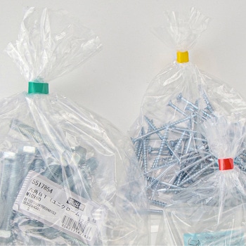 粘着面同士が付くため、食品や、ねじ・部品の小分け袋詰めのバッグシール包装に最適です。