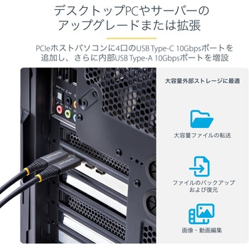 高性能USBカード:デスクトップPCやサーバーのUSB接続機能を拡張。PCI Express x4接続を介し、4口の外部USB Type-C 10Gbpsポートと1口の内部USB Type-A 10Gbpsポートを追加