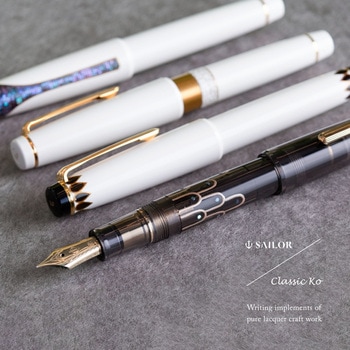 古代遺跡のように神秘的な印象のデザイン「アーラ SV」インスピレーションの元となった神話に登場する羽をもつ神々は、吉祥や美を表します銀蒔絵に螺鈿をあしらった瑞々しい表情が魅力ジュエリーとともに楽しめる新しい佇まいの蒔絵万年筆です。