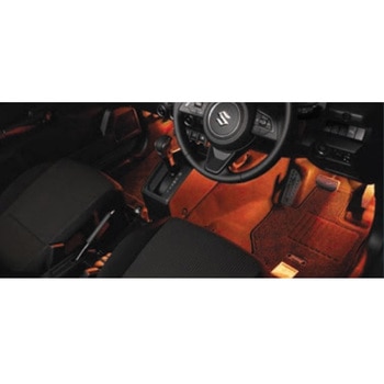 対象車種:ジムニー/シエラ運転席及び助手席の足元を照らすイルミネーションです。スイッチ操作で色を替えることができ、ドアを開けたときは白色に点灯します色は、黄→橙→赤→紫→青→水色→黄緑→緑→オートモードA→オートモードBの順で切り替えられますフロント左右セットイグニッションONで常時点灯します