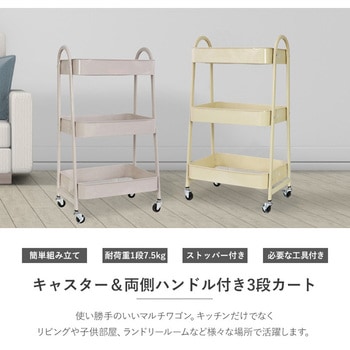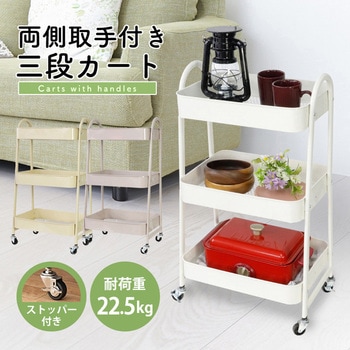 片手移動&持ち運び楽々!両側に取手が付いた三段カート。使い勝手の良いマルチワゴンです。