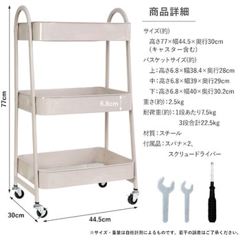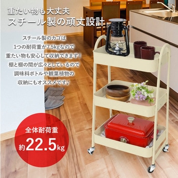 1つのカゴの耐荷重が7.5kgの丈夫なスチール性だから、重たいものも安心して収納できます。