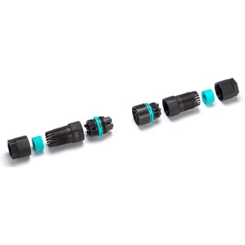 プラグ側(オス)とソケット側(メス)がセットになっている防水型の中継コネクタです。