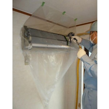 壁掛用エアコン洗浄カバー。エアコン幅900mmまで対応。伸縮ゴム付きで簡単に装着できます。1~3回使用可能。シンプル構造で使いやすさ抜群!洗浄しやすい広い開口部。繰り返し使用すると、消耗・破損などによる脱落・薬液などの漏れなどの原因になります。早めの交換をおすすめします。