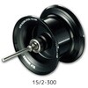 15ソルティガ(ベイト)用のオプショナルスプールドライバーでネジを緩めることで、簡単にスプールの交換が可能となった15ソルティガ10/15対応のジュラルミン製オールマシンカットスプール。予備のスプールを用意しておくことで、高切れへの対応・ラインのチェンジなど、様々なシチュエーションに対応することが可能となる。2015年10月発売の「15/2-300」は、標準糸巻量2号-500mの15サイズで2号-300mが使用できる浅溝タイプ。