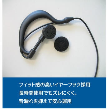 騒がしいところでも受信音が聞き取りやすいトランシーバー用イヤホンマイクです。倉庫作業や店舗接客などのビジネスユーズに最適。静かな場所・受信音を外部に漏らしたくない時にも安心運用できます。耳から外れにくいイヤーフック付き。