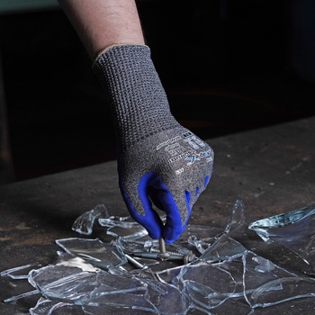 薄手の15ゲージ編手にHPPE+スチール繊維の混合糸を使用し、作業性の良さとISOカットレベル最高のレベルFの耐切創性を兼ね備えています。