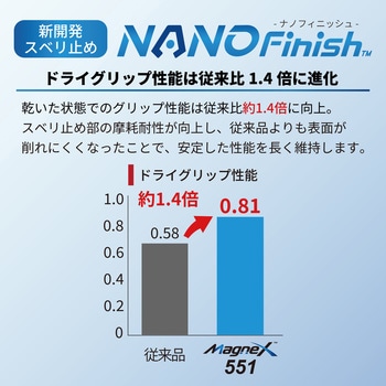 すべり止め部には、ドライグリップ力に優れた新開発のナノフィニッシュ加工を採用しています。