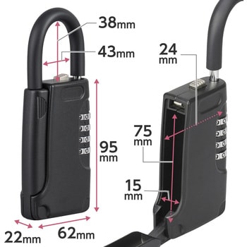 工事現場、賃貸住宅や事務所などの鍵の受け渡しを行うための、収納用セキュリティボックスです。雨樋と壁の間など、細い隙間にも使いやすいスリムタイプです。アルミニウム合金製のため、衝撃に強く、耐腐食性・対候性にも優れます。暗証番号はお好きな番号に何度でも設定可能です。ゴミなどの侵入防止のためのダイヤル保護カバー付です。シャックル部分にはキズ防止のためビニルカバー付きです。