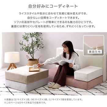 大人かわいいブロックソファ Sサイズ!3種類のサイズ展開で、別売りのM・Lサイズと組み合わせて、ご自身のライフスタイルに合ったレイアウトをお楽しみいただけます。カバーリング仕様なので取り外して洗濯することも可能です。