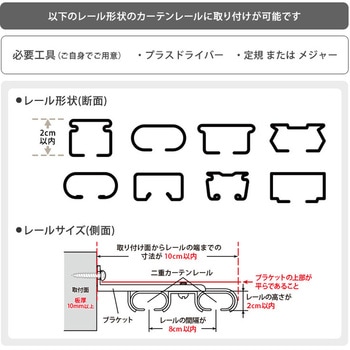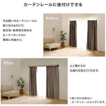 今使っているカーテンレールが、遮光性・断熱性を高めるカーテンボックスに簡単に早変わり!カーテン上部と横からの光漏れを防ぎ、冷暖房効果UP!シンプルな設計でインテリアとして美しいデザインになっています。取付はサイドカバーを取り付け、カーテンレールにカバーを載せるだけ!※取付出来ないカーテンレールもございますので、しっかりとご確認ください。