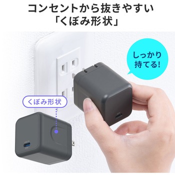 次世代半導体GaN(窒化ガリウム)を採用し、高効率かつコンパクトな設計を実現したUSB Type C×1ポート仕様のACアダプタです。