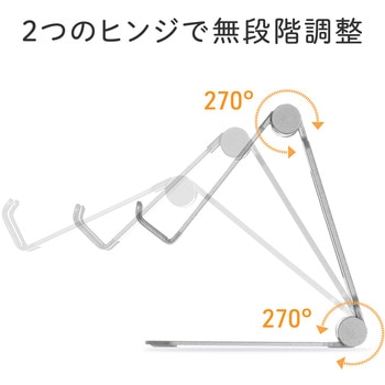 2つのヒンジを搭載しているので使用環境に合わせた最適な角度でご使用いただけます。 また、折りたたんでコンパクトに持ち運ぶこともできます。