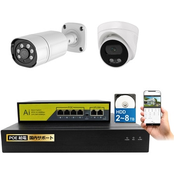 4k(800万画素)PoEタイプNVR防犯カメラセット バレットカメラ1台 ドームカメラ1台、HDD2TB付き