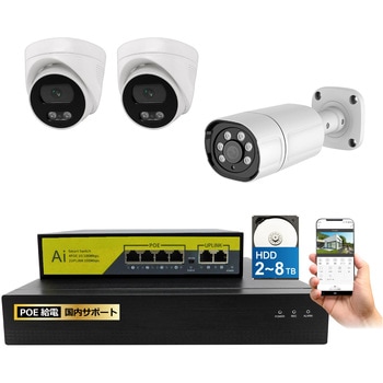 4k(800万画素)PoEタイプNVR防犯カメラセット バレットカメラ1台 ドームカメラ2台、HDD2TB付き