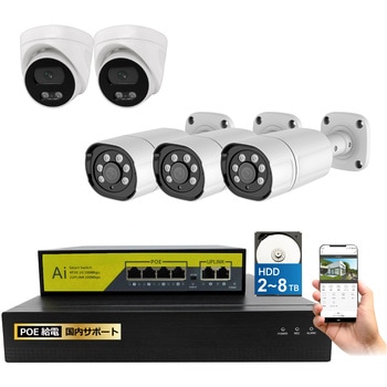 800万画素(4k)の高画素対応LANケーブル経由で電気を供給するので、電源を取れない場所にもカメラを設置できる配線がすっきりする(省配線)専用アプリと接続することで、外出先からスマホで映像を確認することができる赤外線LED搭載の高画素カメラで、夜間でも撮影が可能(モノクロ撮影)録画機はサイクル録画機能で常に最新データをハードディスクに保存