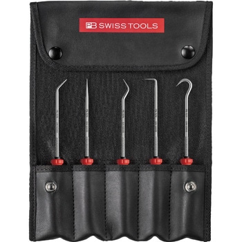 セット内容:スイスグリップEVOピックツール(38675・38676・38677・38678・38679)、ロールケース。ピックツール5本セットです。軸根元にローレット加工を施しています。先端が他社に比べて丸みを帯びており、対象物に傷がつき難い工夫もされています。 スイスグリップEVOは3種の素材からなる新型ハンドルです。ハンドル形状は円形に改良されており、使用時の疲労が少ないだけでなく、旧ハンドルと比較してトルク伝達が25%向上されました。ハンドル後部にはドライバーの先端形状のシンボルマークとサイズを表示していますので、作業に適したドライバーをすぐに選ぶことができます。ハイテク3K素材により、耐薬品性と機械的性能が強化されており、油や濡れた手で握っても滑りにくく、安全に使用できます。3Kハンドルの内部のコア素材は100% リサイクルされた硬質素材です。外側(中層コア)は部分的にリサイクルされた硬質素材です。最も外側は高性能な柔らかい素材が使用されています。外箱付きです。ロールケース付きです。