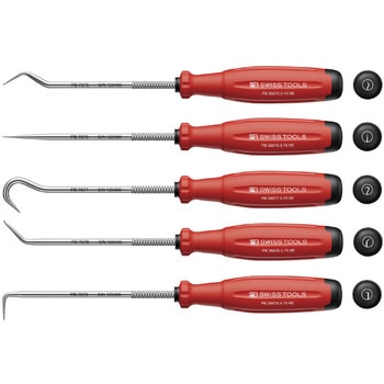 セット内容:スイスグリップEVOピックツール(38675・38676・38677・38678・38679)、ロールケース。ピックツール5本セットです。軸根元にローレット加工を施しています。先端が他社に比べて丸みを帯びており、対象物に傷がつき難い工夫もされています。 スイスグリップEVOは3種の素材からなる新型ハンドルです。ハンドル形状は円形に改良されており、使用時の疲労が少ないだけでなく、旧ハンドルと比較してトルク伝達が25%向上されました。ハンドル後部にはドライバーの先端形状のシンボルマークとサイズを表示していますので、作業に適したドライバーをすぐに選ぶことができます。ハイテク3K素材により、耐薬品性と機械的性能が強化されており、油や濡れた手で握っても滑りにくく、安全に使用できます。3Kハンドルの内部のコア素材は100% リサイクルされた硬質素材です。外側(中層コア)は部分的にリサイクルされた硬質素材です。最も外側は高性能な柔らかい素材が使用されています。ロールケース付きです。