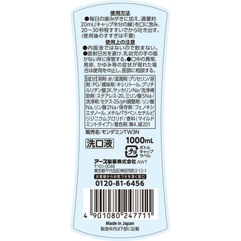 成分●溶剤:水●湿潤剤:グリセリン●溶剤:PG●矯味剤:キシリトール、グリチルリチン酸2K、サッカリンNa●洗浄補助剤:ステアレス-20、三リン酸5Na●洗浄剤:セテス-25●pH調整剤:リン酸Na、リン酸2Na●保存剤:フェノキシエタノール、メチルパラベン、セチルピリジニウムクロリド●香料(マイルドミントタイプ)●着色剤:黄4、緑201使用方法●毎日の歯みがきに加え、適量約20mL(キャップ半分の線)を口に含み、20秒から30秒程すすいでから吐き出す。(使用後のすすぎは不要)区分化粧品・洗口液品名モンダミンTW3Nシリーズモンダミン香味マイルドミント味