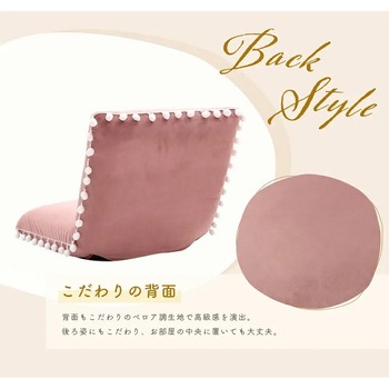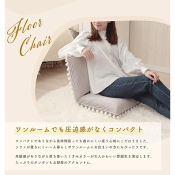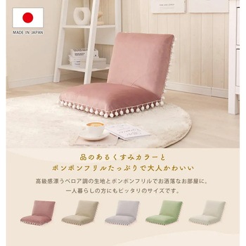 くすみカラーとポンポンフリルがポイントの大人かわいい座椅子です。高級感のあるベロア生地でつくられた座椅子は1人暮らしにもピッタリ!ワンルームでも圧迫感のないコンパクトなサイズ感です。