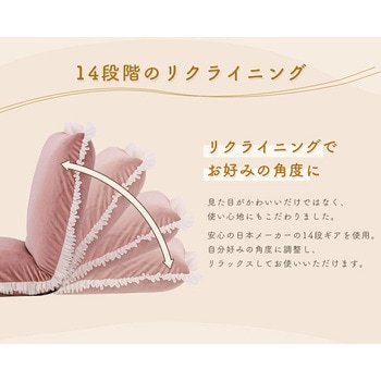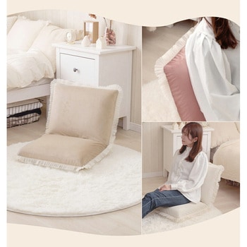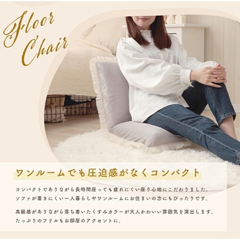 くすみカラーとプリーツフリルがポイントの大人かわいい座椅子です。高級感のあるベロア生地でつくられた座椅子は1人暮らしにもピッタリ!ワンルームでも圧迫感のないコンパクトなサイズ感です。