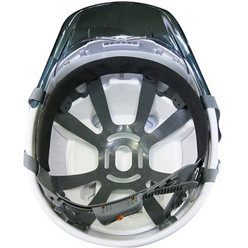 ▼変形することで、上方からの落下物の衝撃を緩和し、ヘルメットの脱落を防ぎます。