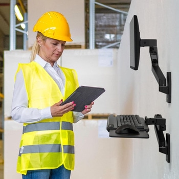 LX Pro ウォールマウントモニターアーム (45-683-292) と組み合わせて、生産性が高く人間工学に基づいたワークステーションを構築できます。