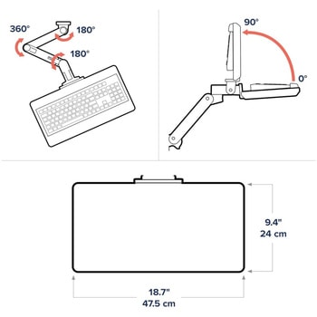 キーボードトレーは360°動き、5°のバックチルト付きなので、人間工学的に快適な位置で作業ができます。