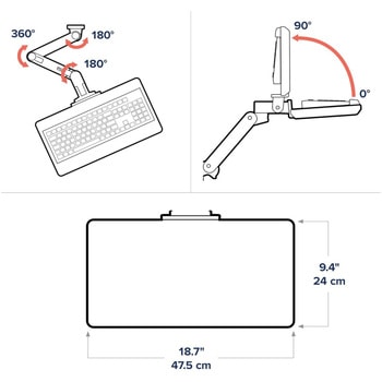 キーボードトレーは360°動き、5°のバックチルト付きなので、人間工学的に快適な位置で作業ができます。