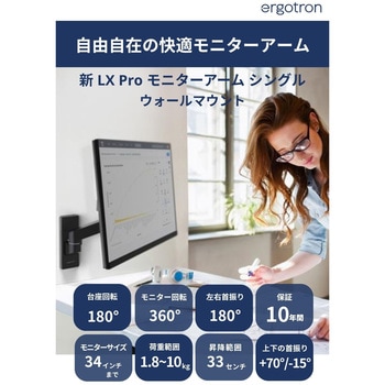 従来のLXウォールマウントより軽いモニターを設置可能。1.8~10kgまで、34インチまでのモニターに対応。