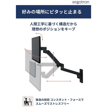 独自のコンスタント・フォース技術で、モニターの位置、角度、高さの調整が軽い力で自由自在。好きなところでピタッと止まります。