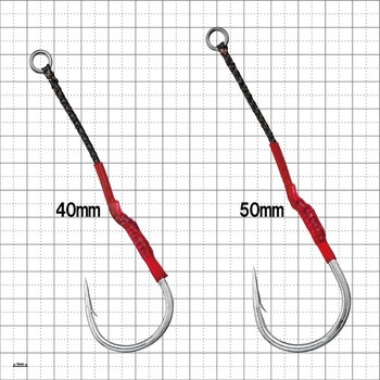 セミロング~ロング系ジグに最適!ザイロン仕様アシストフックタチウオパターンなどで多用するセミロング~ロングジグに最適な長さのアシストライン設計。軽くて吸い込みの良いジギングフック・バーティカルリミットを使用し、アシストラインにはサワラやマグロ類など歯の鋭い魚種にも対応可能なザイロンを採用。張りのあるアシストラインと収縮チューブ使用によりジグへの抱きつきを軽減します。6/0、7/0はヒラマサ、カンパチ、マグロなどのジギングに最適な長さのアシストラインに設計しています。