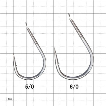 計算し尽された鈎先角度かつストレートポイント設定で、初期掛かりの良さと貫通力のバランスを追求しブリ・ヒラマサからカンパチ・大型ハタ類に対して、剛柔いずれのファイトスタイルにも対応可能な強度を備えた線径の素材を号数ごとに選定しました。