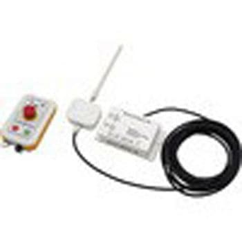 防水・充電式のリモコン、ライトカーテン・ドアスイッチなどの安全機器と接続できる接点送信機のどちらかの送信機と、停止したい機械に設置する受信機の組み合わせでご使用いただけます。本体と離れた場所・屋外への設置に好適で、アンテナ分離も可能です。