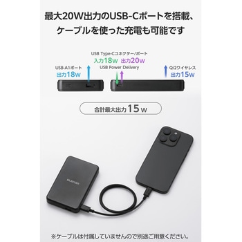 最大出力20WのUSB Type-C(TM)ポート×1、最大出力18WのUSB-Aポート×1を搭載。Qi2ワイヤレス充電の他に、ケーブルを使った充電も可能です。