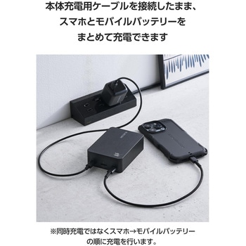 本体充電用ケーブルを接続したままで、スマートフォンとモバイルバッテリーを充電できる”まとめて充電”に対応しています。