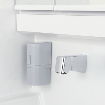 浴室で浮かせる収納を!下から出てくるタイプの液体用ディスペンサーです。