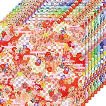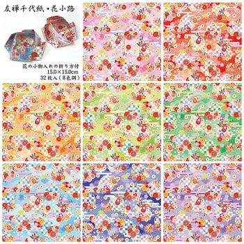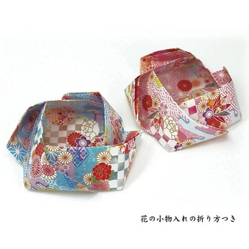上質紙に花を散りばめた和柄(同柄8パターン)の千代紙です。花の小物入れの折り方付き。