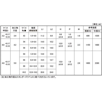リベット ブラインド リベット径:6.4mm 穴径:7mm 1袋 100個入