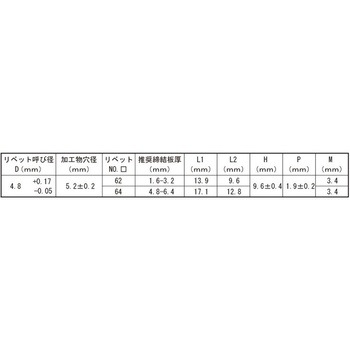 リベット ブラインド リベット径:6.4mm 穴径:7mm 1袋 100個入