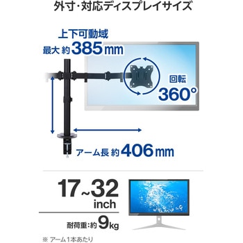 用途17インチから32インチのモニターに対応する、モニター用アームです。