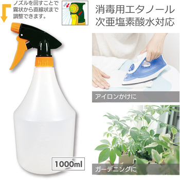 ガーデニングのほか、アイロンがけやお掃除など、さまざまな場面で活躍します。ノズルキャップを回すと霧の出方を自由に変更できます。