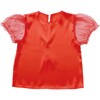 袖がレースになったおしゃれなパフスリーブシャツ!袖部分がレースのパフスリーブシャツです。カラフルなベースなので、バリエーション豊富な衣装作りができます!演技やダンスなどの衣装に!サテン生地で、肌触りが良く、光沢のある素材です。