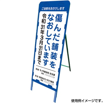 国土交通省型工事標示看板のレンタル別注商品です。工期や工事名、発注者、施工者(社名)などをオリジナルで入力作成できます。工事内容をわかりやすく表示、工事内容に応じた名入れが可能です。ブロー製看板枠を使用しており丈夫で、プリズム反射型の板を使用しているので夜間の視認性も向上します。