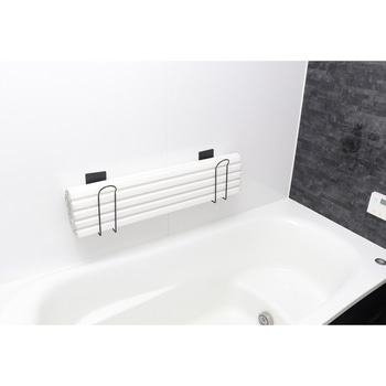 マグネットが付く浴室壁面に浮かせて収納!水気が溜まりにくく衛生的。ボードタイプやシャッタータイプなど、色々な風呂フタに対応でき便利です。