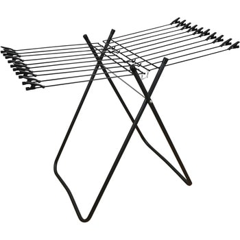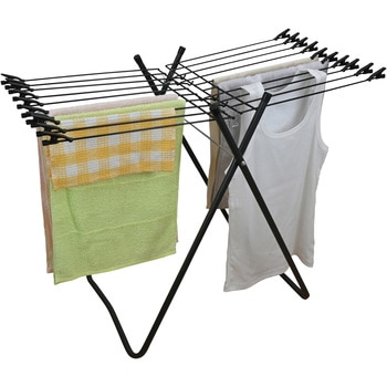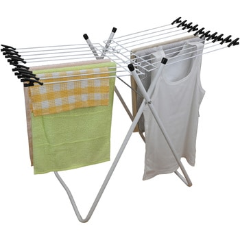 ピンチ付きで洗濯物をしっかりキープ。サーキュレーターや扇風機での乾燥も洗濯物が飛びにくい。タオル干しとしてだけでなく、下着や小物干しにも。室内、浴室、ベランダでサッと干せます。たっぷり干せて、スリムに収納。組み立て簡単!左右のアームを交差するだけ。