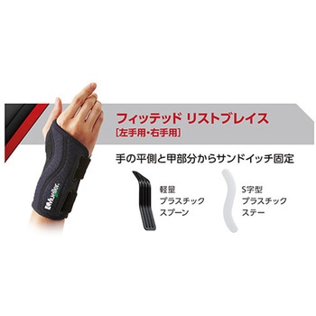 ●手のひら、甲に内蔵したプレートが手首全体をしっかり固定。●2つのストラップで締め具合を調整できます。●痛みのある手首から手の甲部位までを全体的に保護。●この製品は手根管症候群のためにデザインされ、負傷し弱った手首をサポートします。●手のひらのカーブに沿ってフィットする軽量アルミスプーンは、手首を安定した角度に維持。●手の甲側に内蔵したS字型プラスチックステーは手首をしっかり固定。●通気性のよいメッシュ生地は一日中装着することができます。